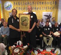 Master Lun Zhixiong Vice Chairman of the Foshan Wing Chun Association presenting Derek Frearson with a plaque.