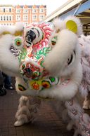 The illustrious lion bringing good luck to the opening of a new Kung Fu school.